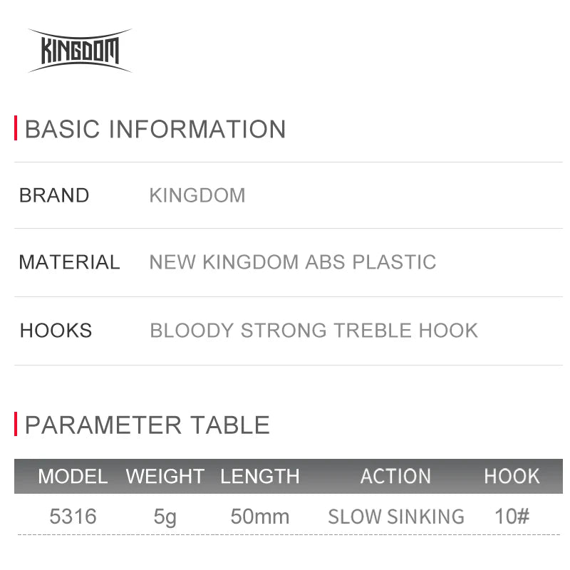 Streamlined Body: The streamlined fish body reduces wind resistance, ensuring the crankbait can be thrown for longer distances without fatigue.,Artificial Bait: As an artificial bait, it mimics the movement and appearance of real prey, making it irresistible to bass, trout, walleye, pike, and more.,Versatile Use: Ideal for a range of freshwater and saltwater species, including snook and juvenile tarpon, this crankbait is a versatile addition to any angler's tackle box.,5g 50mm Size: The 5g 50mm slow sinking minnow crankbait is perfectly sized for precise casting and effective fishing.,Slow Sinking Design: Its slow sinking design allows the lure to glide through the water, mimicking injured prey and attracting a variety of fish species.